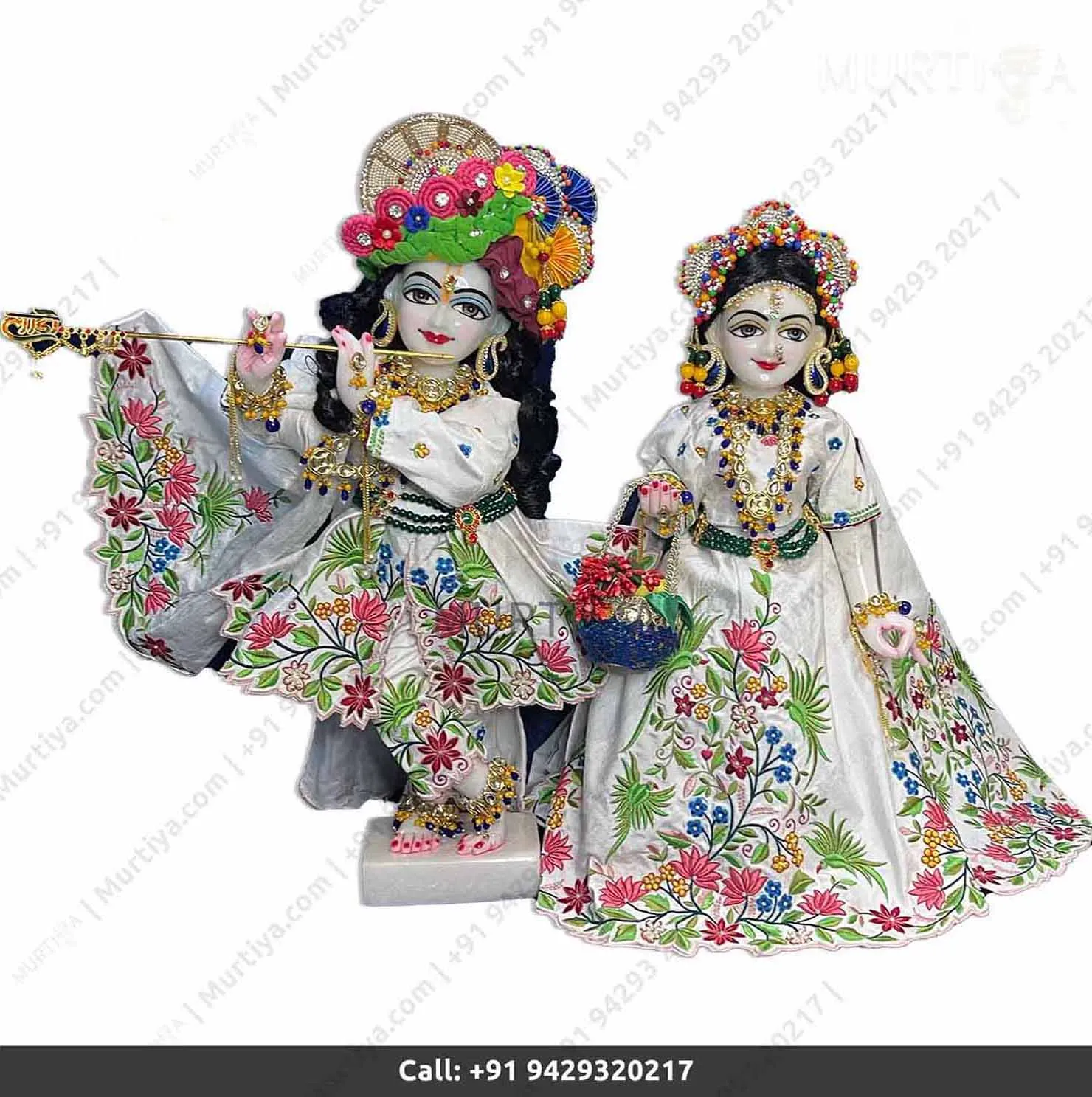 18 Inch Makrana marble Radha Krishna Ji, pure white embroidery clothes & jewellery. Made-to-order, pure handmade. Shop at Murtiya.