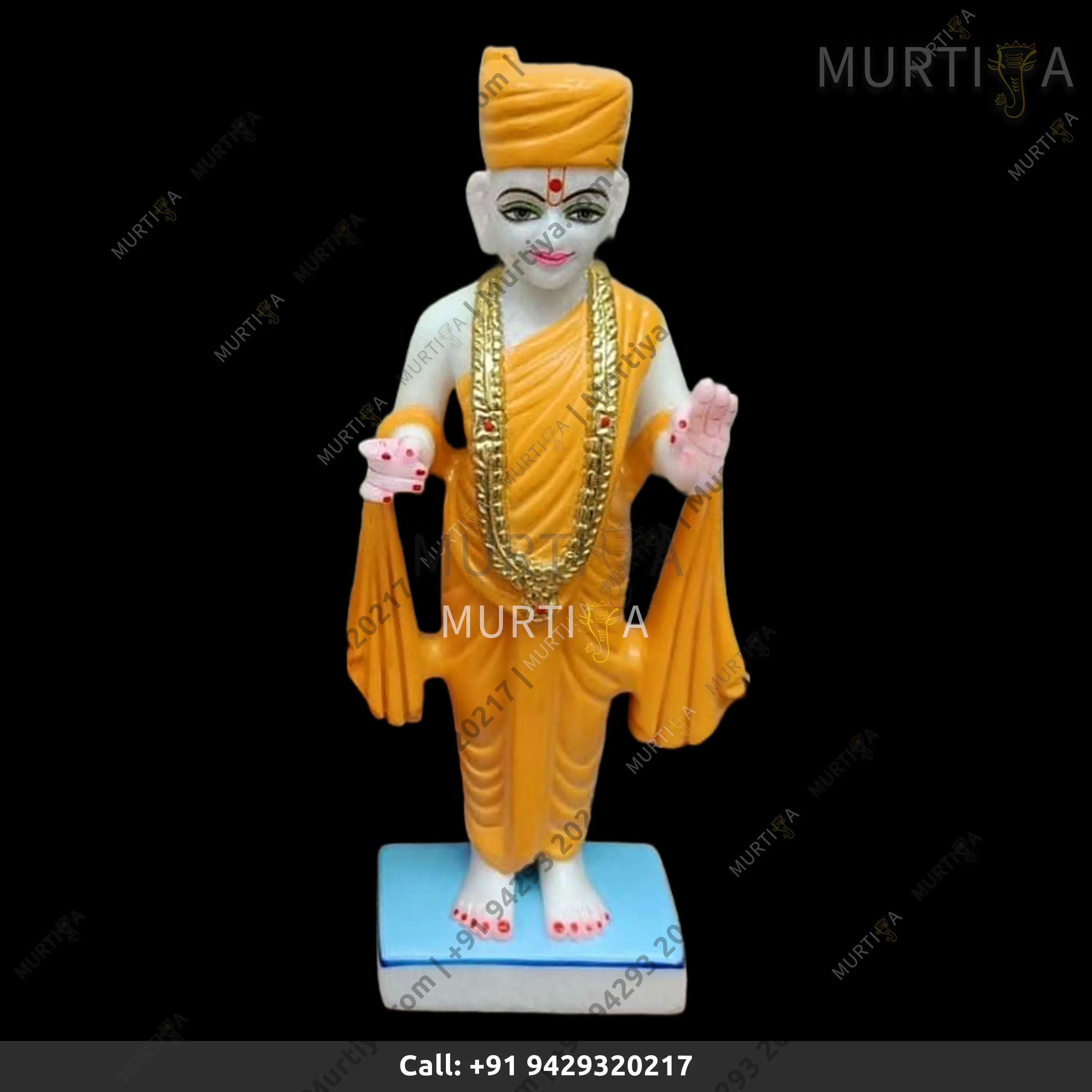 Handcrafted Makrana Pure Marble Gunitanand Swami, 12–30 inch, made-to-order with square base. Shop authentic marble murti at Murtiya.
